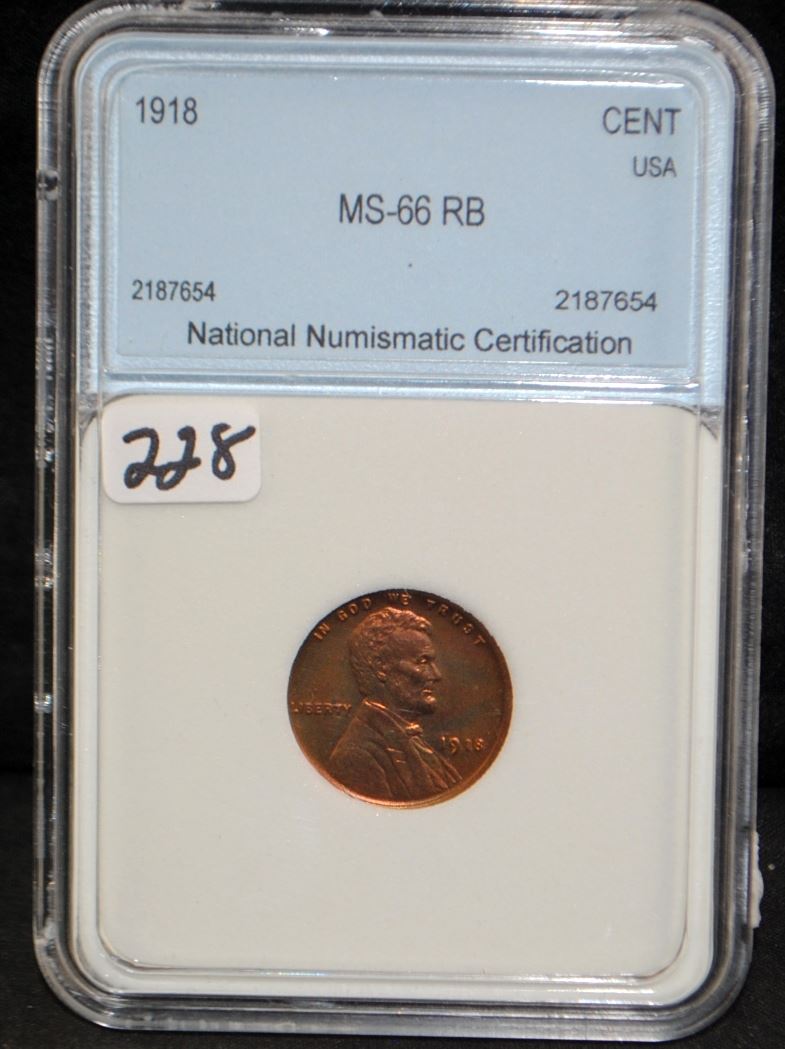1918 LINCOLN CENT - MS66 RB (THE CURRENT PCGS PRICE GUIDE LISTS AN MS66 RB @ $450.00)