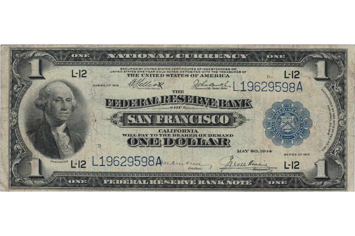 One 1918 Large $1 San Francisco Federal Reserve Bank National Currency Note.