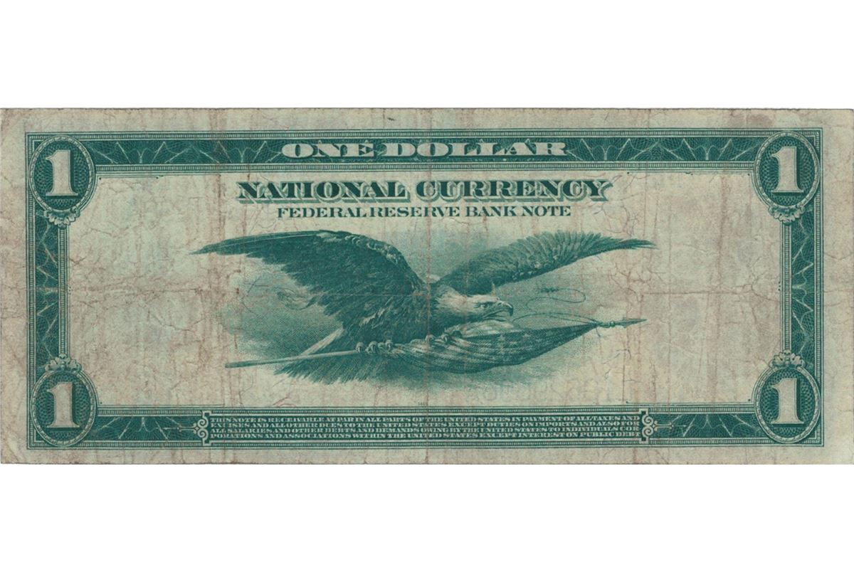 One 1918 Large $1 San Francisco Federal Reserve Bank National Currency Note.