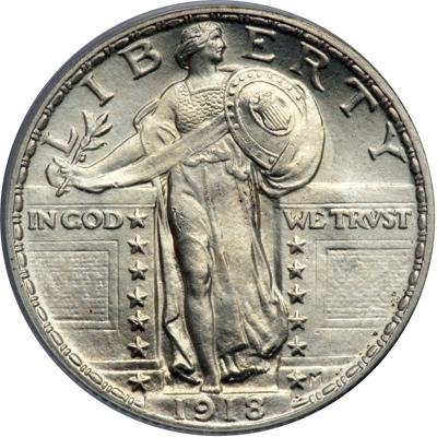 Historic note: A desirable early Type 2 issue. Contrary to legend, there was no public outcry against Liberty's exposed breast on the 1916-17 Type 1 quarters. Rather, the design was modified upon the insistence of Hermon MacNeil and to improve the flow of metal during striking. Due to design limitations, however, Full Heads are rarely seen on the Type 2 dates from 1917-30, although those struck at Philadelphia, like this 1918, tend to show finer detail overall.