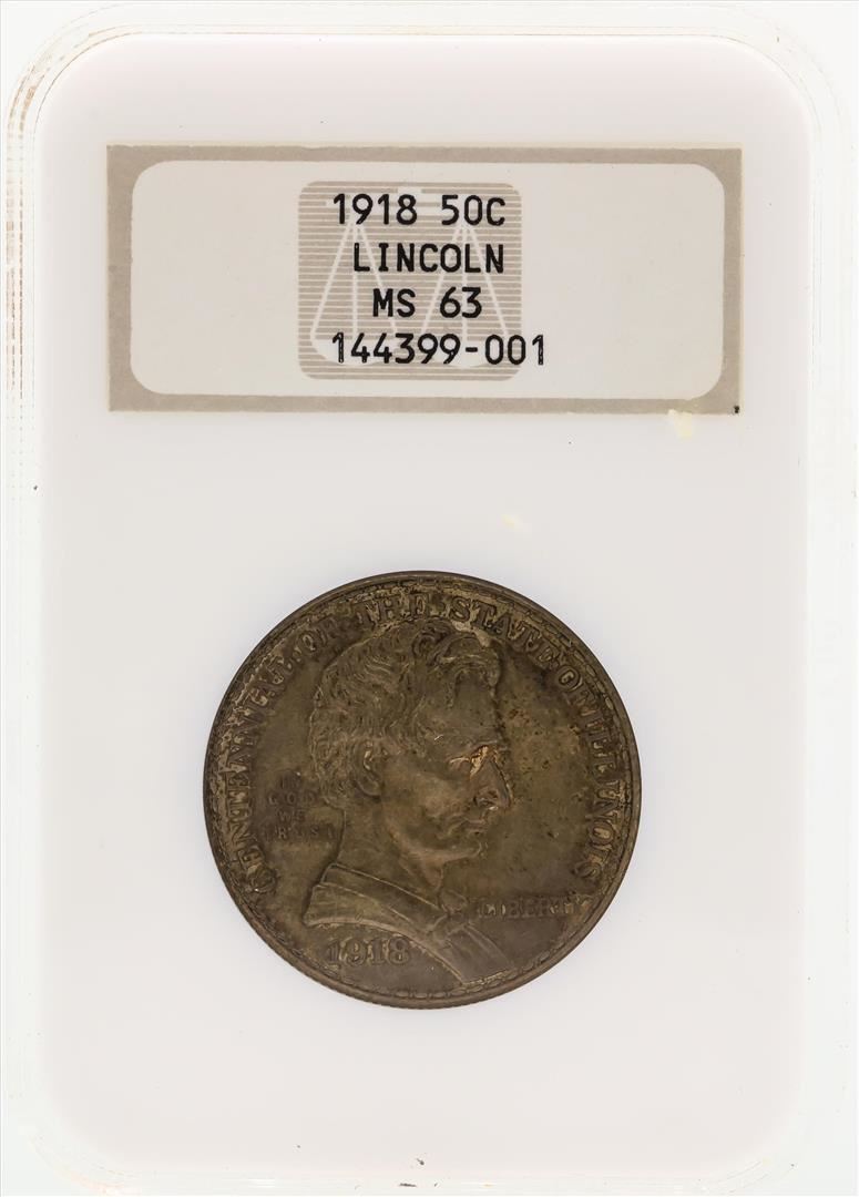 One 1918 Lincoln Commemorative Half Dollar Coin NGC MS63. PCGS Graded.