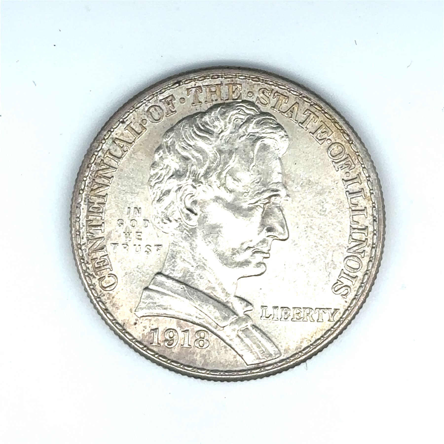 A fully original 1918 Lincoln-Illinois Silver Classic Commemorative Halve in Choice Uncirculated condition. Bright satiny luster with a hint of rosette rim toning. Just a wonderful example of this popular Lincoln Classic Silver Commemorative Half Dollar.& nbsp; A great Uncirculated Type Commem Half Dollar. Super Clean with original mint state luster remaining.& nbsp;
