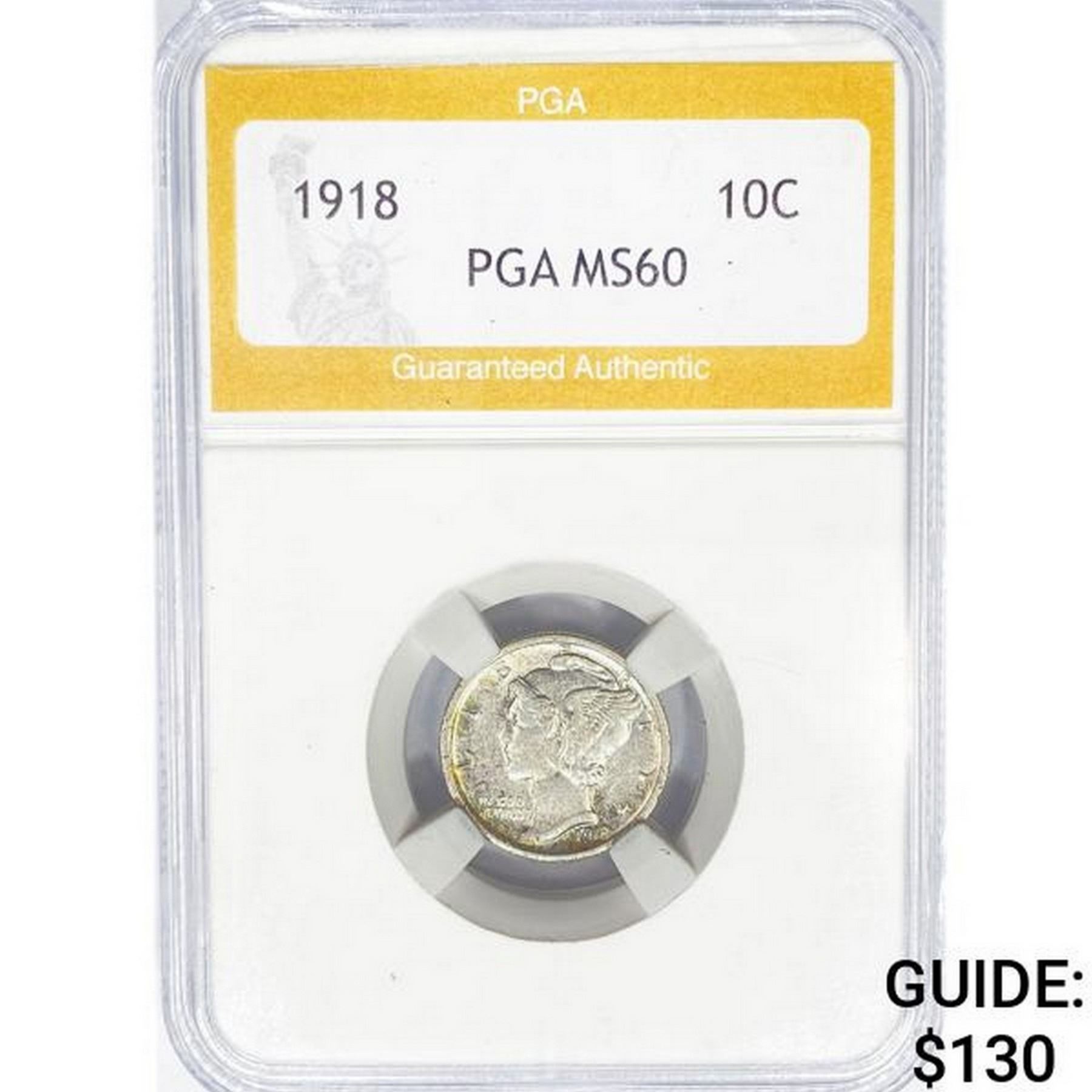 1918 Mercury Silver Dime PGA MS60