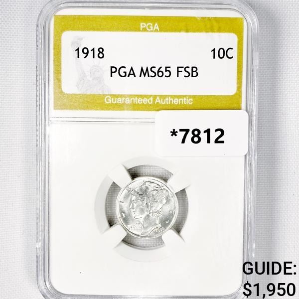 1918 Mercury Silver Dime PGA-MS65 FSB
