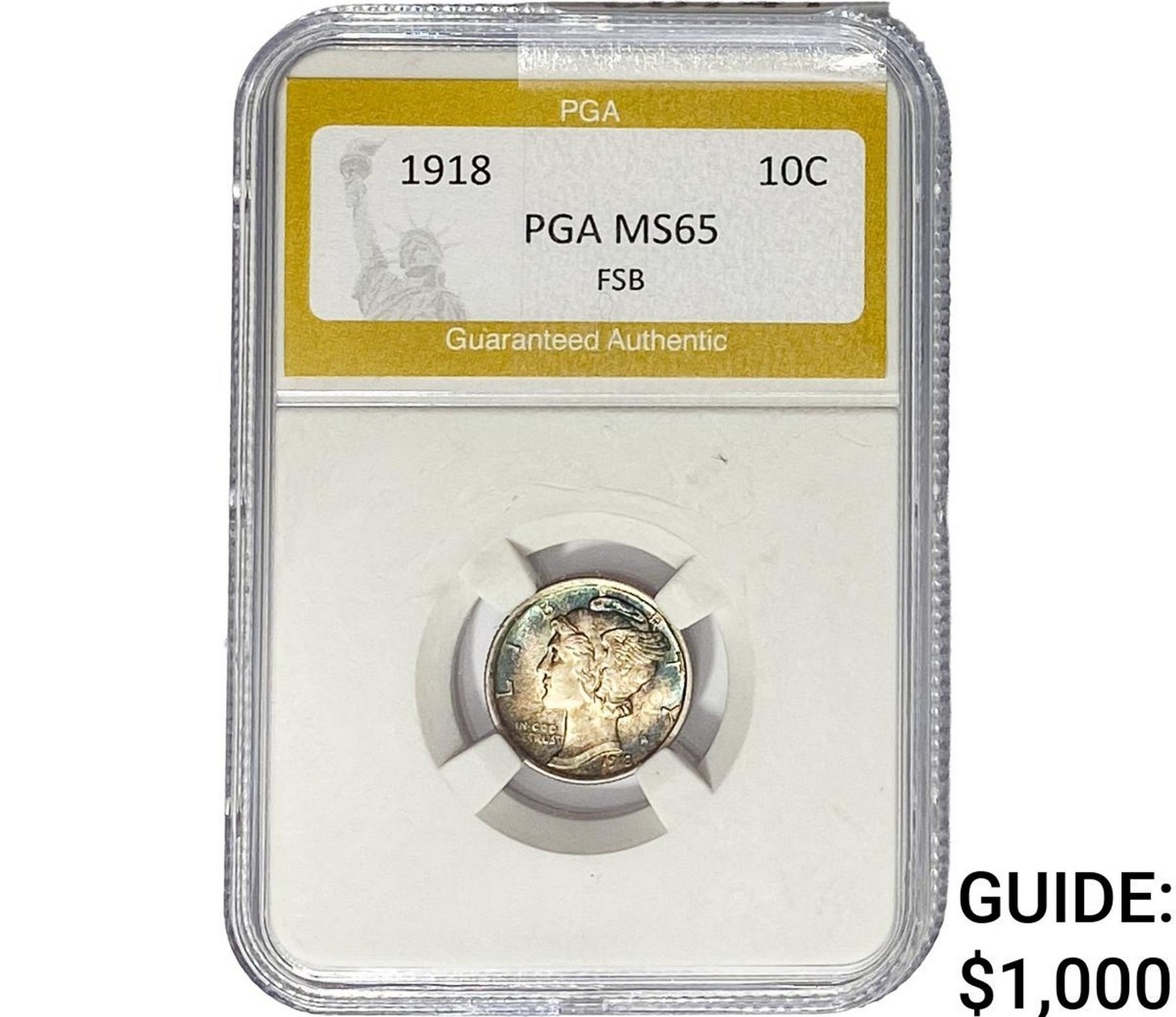 1918 Mercury Silver Dime PGA MS65 FSB