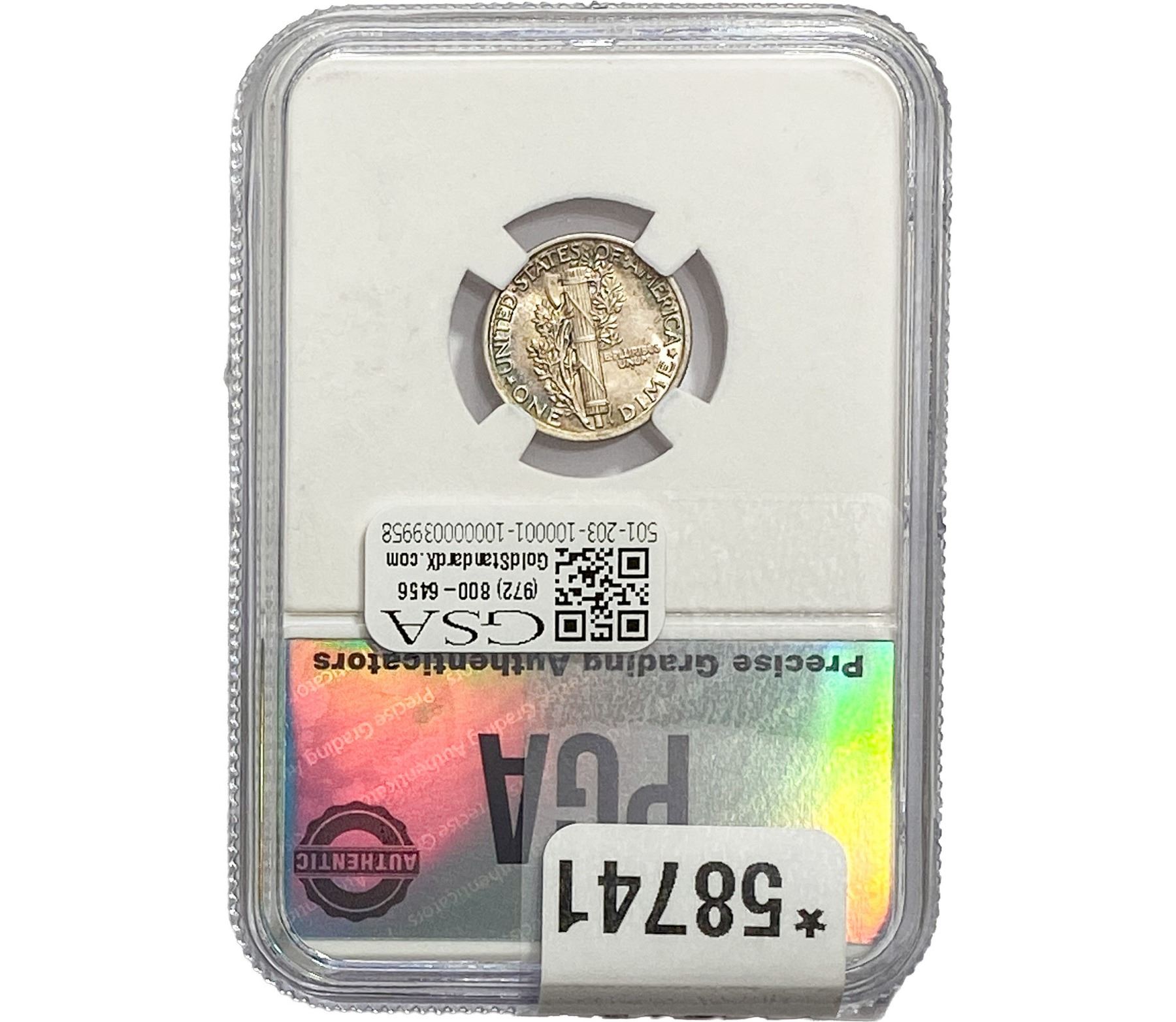 COINS AND CURRENCY LISTED IN GSA’S CATALOG AS GRADED AND ENCAPSULATED BY PCGS, NGC, ANACS, ICG, PCGS CURRENCY, PMG, PCGS BANKNOTE GRADING, CMC OR ANY OTHER THIRD-PARTY GRADING SERVICE ARE LIKEWISE SOLD “AS-IS” EXCEPT AS EXPRESSLY SET FORTH HEREIN. ALL THIRD-PARTY GRADING SERVICE GUARANTEES, INCLUDING AUTHENTICITY, ARE THE SOLE RESPONSIBILITY OF THE THIRD-PARTY GRADING SERVICE AND NOT WARRANTIES OR GUARANTEES OF GSA. BIDDERS SHOULD CONTACT THESE THIRD-PARTY GRADING SERVICES DIRECTLY WITH RESPECT TO ANY CLAIMS OR QUESTIONS THEY MAY HAVE CONCERNING THEIR GUARANTEES AND WARRANTIES. BIDDERS ACKNOWLEDGE AND AGREE THAT AUCTIONEER IS NOT BOUND BY OR LIABLE FOR ANY OPINION OR CERTIFICATION BY ANY THIRD-PARTY GRADING SERVICE. REMOVAL OF A PRODUCT FROM ITS PROTECTIVE CASING OR HOLDER OR ALTERATION OF ANY COIN HOLDER WAIVES ALL RIGHTS CONCERNING THE PRODUCT CONTAINED THEREIN.