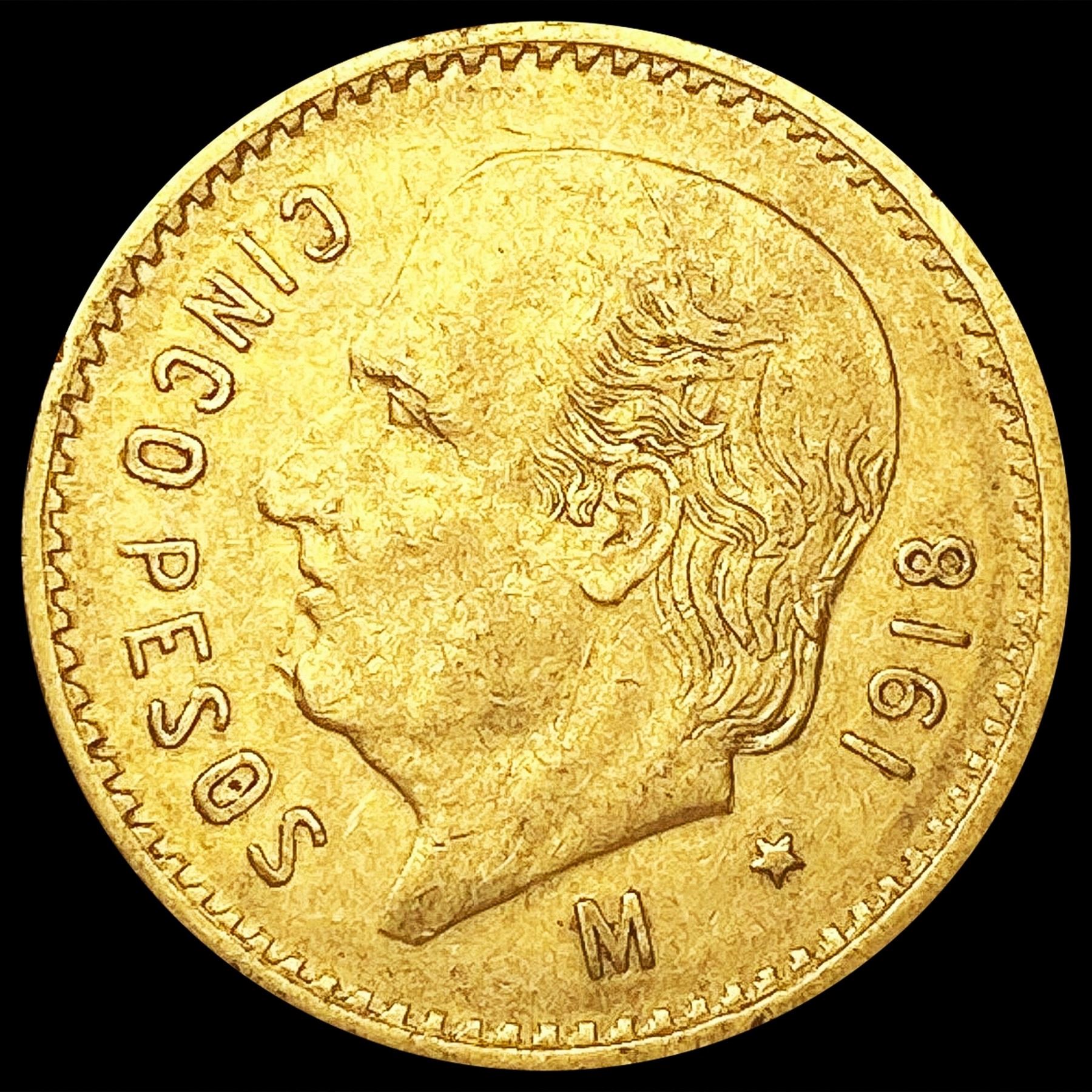 1918 Mexico .1206oz Gold 5 Pesos UNCIRCULATED
