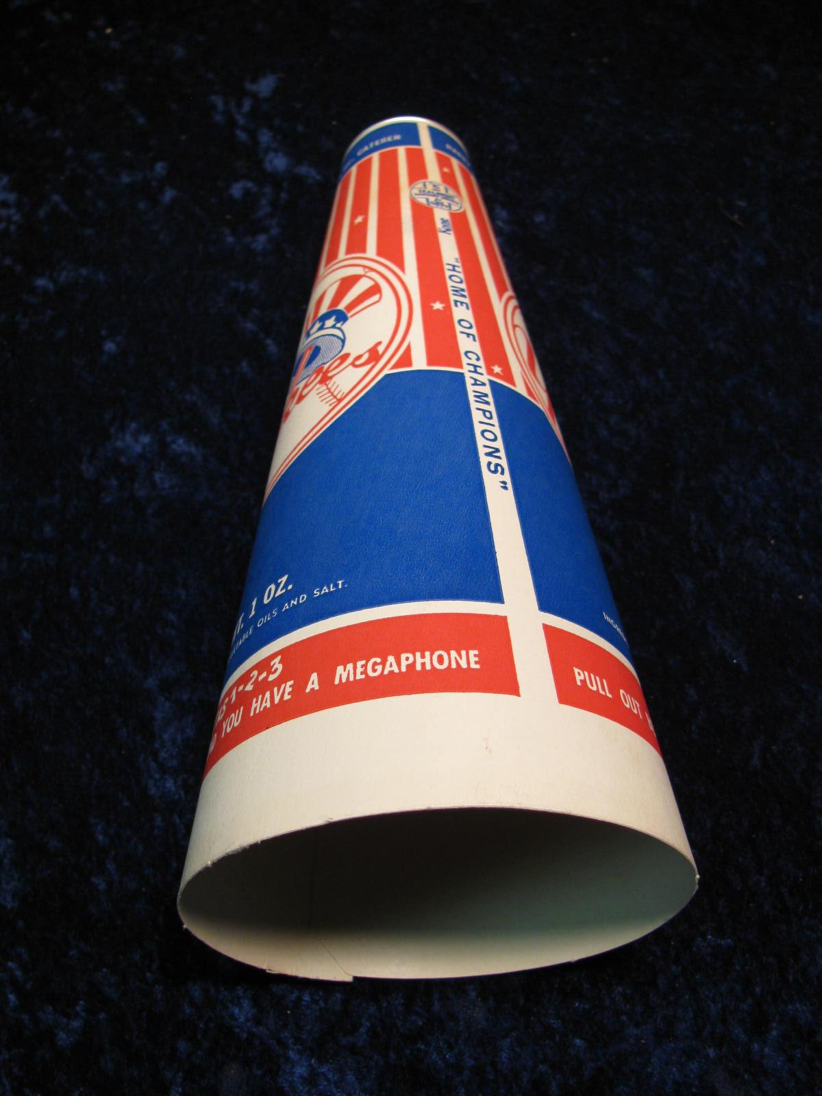1918. New York Yankees Popcorn Tub Megaphone. Consignor says he has sold these for as much as $50.
