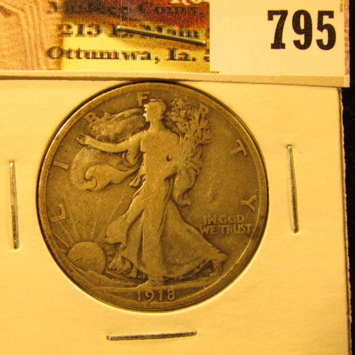 1918 P U.S. Walking Liberty Half Dollar, VG.