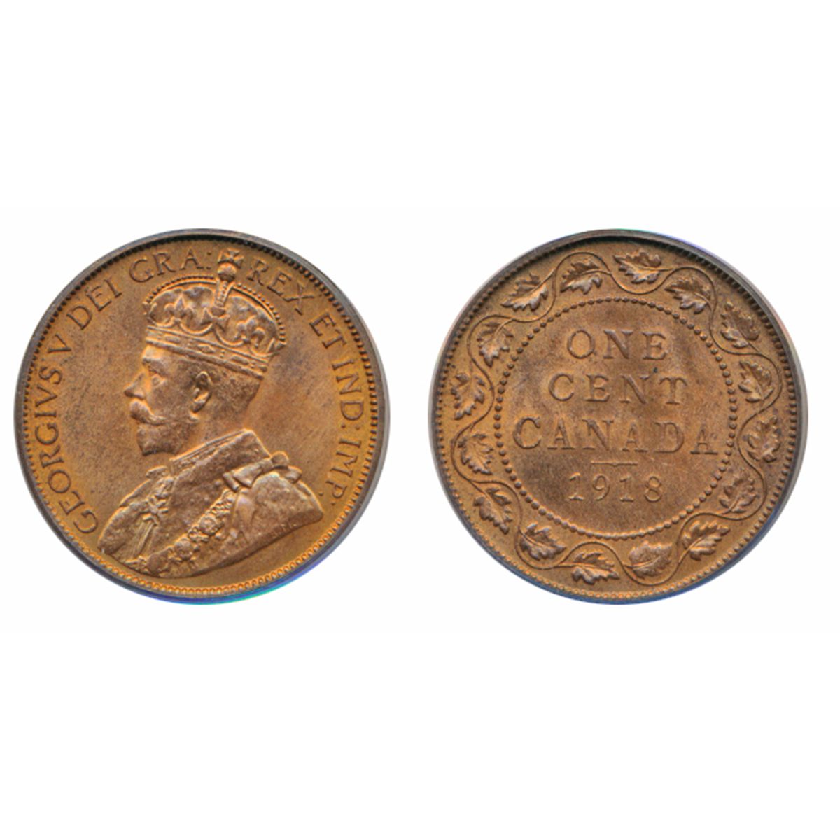 1918. PCGS graded Mint State-65. Red-Brown. 60%/45% luster on obverse/reverse.