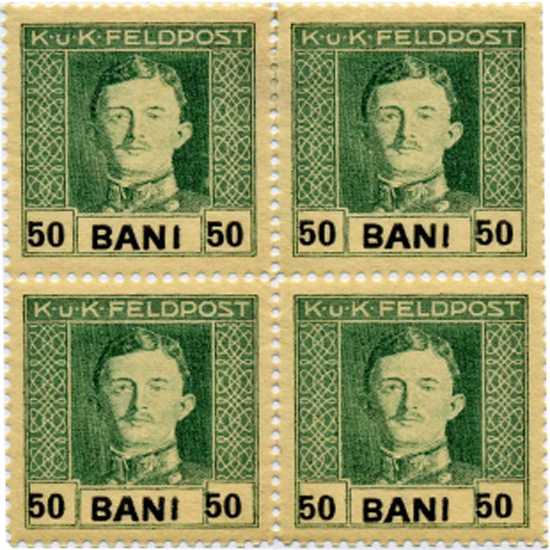 1918 Romania 50b Austria Occupation Carl 4 Block Variety (STM-0468)