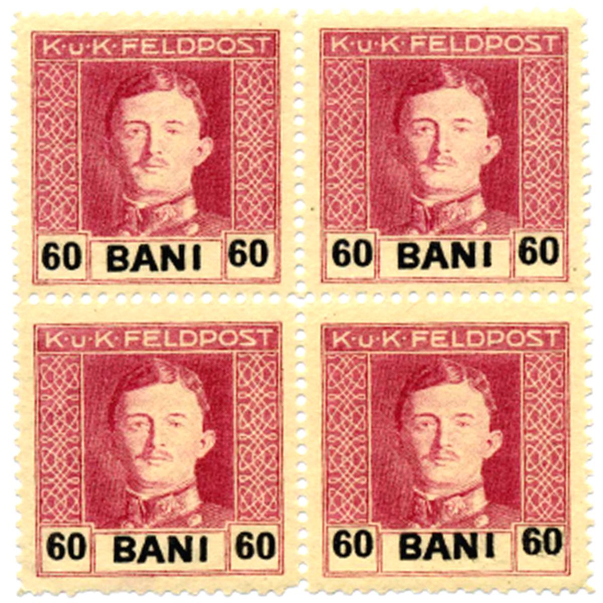 1918 Romania 60b Austria Occupation Carl 4 Block Variety (STM-0467)