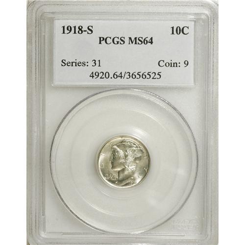 1918-S 10C MS64 PCGS. PCGS Population (92/41). NGC