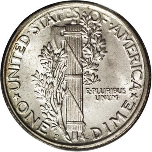 <B>1918-S<10C> MS65 Full Bands PCGS.</B></I> A brilliant Gem example with sharp design details and exceptional eye appeal. The surfaces are fully brilliant with frosty silver luster and a thin sliver of gold toning at the top of the obverse. A lovely candidate for the Set Registry collector. Population: 22 in 65, 19 finer (4/06).