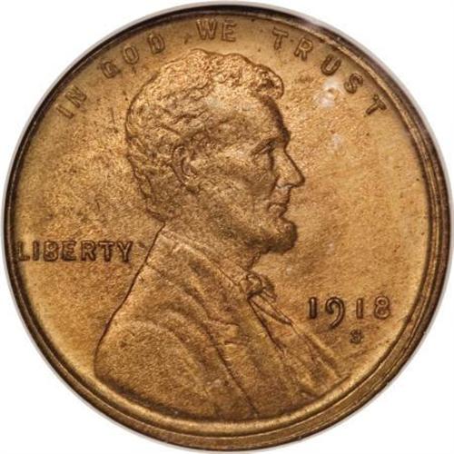 <B>1918-S 1C MS65 Red NGC.</B></I> Copper-orange luster resides on the surfaces of this 1918-S cent. While typical Mint State coins exhibit poorly rendered details (David Lange, 2005), a better-than-average strike endows this Gem. A couple of grade-consistent marks are noted on each side, and what appears to be the remnants of a fingerprint occurs on the lower reverse. Census: 7 in 65 Red, 0 finer (1/08).<BR><BR><B>Coin Engraver:</B> Victor D. Brenner<BR><BR><b>Shipping:</b> Coins & Currency (<a target="_blank" href="http://www.heritageauctions.com/common/shipping.php">view shipping information</a>)
