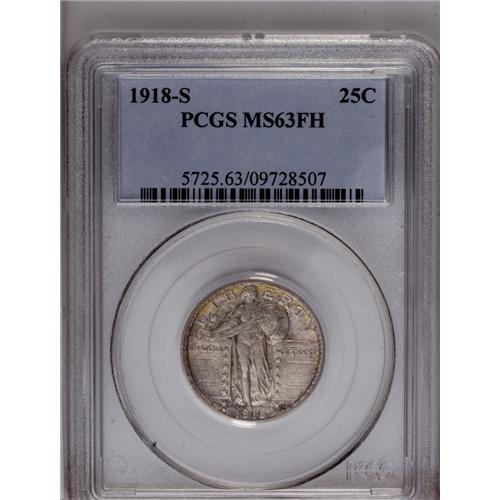 1918-S 25C MS63 Full Head PCGS. The obverse has gray, 1918-S[25C] MS63 Full Head PCGS.