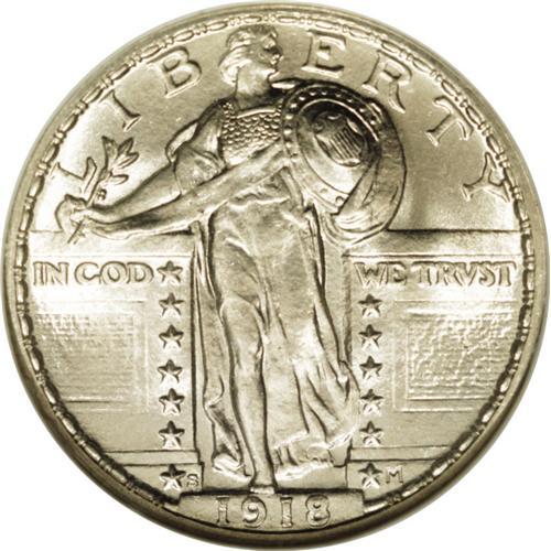 <B>1918-S<25C> MS64 Full Head NGC.</B></I> With a sizeable original mintage of 11 million pieces, the 1918-S is an obviously common coin in an absolute sense. On the other hand, the hectic wartime atmosphere of the San Francisco Mint meant that the vast majority of pieces struck did not display full head definition. The present near-Gem is a noteworthy exception, all features displaying pleasingly sharp detail. The lustrous, untoned surfaces are a few trivial blemishes away from an even higher grade.
