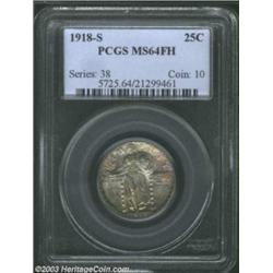 <table><tr><td><TABLE cellSpacing=0 cellPadding=0 width="100%" bgColor=#000000 border=0><TBODY> <TR><TD width="100%"><TABLE cellSpacing=1 cellPadding=3 width="100%" border=0><TBODY><TR><TD width="100%" bgColor=#79735c><FONT face=arial color=#ffffff size=3><B>Description</B> </FONT></TD></TR><TR><TD width="100%" bgColor=#ffffff><FONT face=arial size=2><B>1918-S 25C MS64 Full Head PCGS.</B></I> Even though 11 million pieces were struck of this issue, the 1918-S is a significant rarity among early Standing Liberty quarters with full head detail. This is a lovely, near-Gem example that has bright, lustrous surfaces that display an intermixture of lilac and golden-rose coloration over each side. Population: 53 in 64, 29 finer (9/03). </FONT></TD></TR></TBODY></TABLE></TD></TR></TBODY></TABLE><BR><A name=PricesRealized></A><TABLE cellSpacing=0 cellPadding=0 width="100%" bgColor=#000000 border=0><TBODY><TR><TD width="100%"><TABLE cellSpacing=1 cellPadding=3 width="100%" border=0><TBODY><TR><TD width="100%" bgColor=#79735c><A name=PR><FONT face=arial color=#ffffff size=3><B>Previous Prices from Heritage Auctions</B> </FONT></A></TD></TR><TR><TD bgColor=#f6f6ed><TABLE cellSpacing=0 cellPadding=0 width="100%" border=1><TBODY><TR><TD align=middle width="33%"><B>Date</B></TD><TD align=middle width="33%"><B>Service</B></TD><TD align=middle width="33%"><B>Price</B></TD></TR><TR bgColor=whitesmoke><TD width="33%"><B>09/10/2002</B></TD><TD width="33%">PCGS</TD><TD width="33%">$2,645.00</TD></TR><TR bgColor=whitesmoke><TD width="33%"><B>09/20/2003</B></TD><TD width="33%">PCGS</TD><TD width="33%">$3,105.00</TD></TR><TR bgColor=whitesmoke><TD width="33%"><B>03/01/2003</B></TD><TD width="33%">NGC</TD><TD width="33%">$2,472.50</TD></TR><TR bgColor=whitesmoke><TD width="33%"><B>09/28/2002</B></TD><TD width="33%">PCGS</TD><TD width="33%">$2,415.00</TD></TR><TR bgColor=whitesmoke><TD width="33%"><B>09/28/2002</B></TD><TD width="33%">PCGS</TD><TD width="33%">$3,680.00</TD></TR><TR bgColor=whitesmoke><TD width="33%"><B>07/30/2002</B></TD><TD width="33%">PCGS</TD><TD width="33%">$2,472.50</TD></TR><TR bgColor=whitesmoke><TD width="33%"><B>01/12/2002</B></TD><TD width="33%">PCGS</TD><TD width="33%">$2,990.00</TD></TR><TR bgColor=whitesmoke><TD width="33%"><B>08/08/2001</B></TD><TD width="33%">PCGS</TD><TD width="33%">$8,337.50</TD></TR><TR bgColor=whitesmoke><TD width="33%"><B>01/05/2001</B></TD><TD width="33%">NGC</TD><TD width="33%">$2,415.00</TD></TR><TR bgColor=whitesmoke><TD width="33%"><B>01/05/2001</B></TD><TD width="33%">PCGS</TD><TD width="33%">$4,140.00</TD></TR><TR bgColor=whitesmoke><TD width="33%"><B>08/07/2000</B></TD><TD width="33%">NGC</TD><TD width="33%">$3,910.00</TD></TR><TR bgColor=whitesmoke><TD width="33%"><B>01/07/2000</B></TD><TD width="33%">PCGS</TD><TD width="33%">$2,530.00</TD></TR><TR bgColor=whitesmoke><TD width="33%"><B>08/13/1999</B></TD><TD width="33%">NGC</TD><TD width="33%">$1,121.25</TD></TR><TR bgColor=whitesmoke><TD width="33%"><B>08/02/1997</B></TD><TD width="33%">PCGS</TD><TD width="33%">$1,955.00</TD></TR><TR bgColor=whitesmoke><TD width="33%"><B>01/11/1997</B></TD><TD width="33%">PCGS</TD><TD width="33%">$2,127.50</TD></TR><TR bgColor=whitesmoke><TD width="33%"><B>01/06/1996</B></TD><TD width="33%">PCGS</TD><TD width="33%">$5,280.00</TD></TR><TR bgColor=whitesmoke><TD width="33%"><B>09/10/1993</B></TD><TD width="33%">PCGS</TD><TD width="33%">$3,960.00</TD></TR><TR bgColor=whitesmoke><TD width="33%"><B>03/01/1997</B></TD><TD width="33%">ANACS</TD><TD width="33%">$7,700.00</TD></TR><TR bgColor=whitesmoke><TD width="33%"><B>01/01/1999</B></TD><TD width="33%">PCGS</TD><TD width="33%">$2,530.00</TD></TR></TBODY></TABLE></TD></TR><TR><TD bgColor=#ffffff><FONT face=arial size=1 ?>PLEASE NOTE: All prices realized reflect the final hammer price PLUS the buyer's premium in auctions that charge a buyer's premium. Each item has a notation at the top of the listing indicating whether that lot included a buyer's premium. Example: A item that sells with a final hammer price of $100 and a 20% buyer's premium will display with a price realized of $120. All information listed is intended to be as accurate as possible, but errors are possible. Please use this guide carefully and inform us of any inaccuracies. </FONT></TD></TR></TBODY></TABLE></TD></TR></TBODY></TABLE><BR><TABLE cellSpacing=0 cellPadding=0 width="100%" bgColor=#000000 border=0><TBODY><TR><TD width="100%"><TABLE cellSpacing=1 cellPadding=3 width="100%" border=0><TBODY><TR><TD width="100%" bgColor=#79735c colSpan=6><FONT face=arial color=#ffffff size=3><B>Price Guide*</B> </FONT></TD></TR><TR bgColor=#f6f6ed><TD align=middle><B>Grade</B> </TD><TD align=middle><B>Coin World<BR>(Trends)</B> </TD><TD align=middle><B>Numismedia<BR>Retail</B> </TD><TD align=middle><B>Numismedia<BR>Wholesale</B> </TD><TD align=middle><B>Coin<BR>Universe</B> </TD><TD align=middle><B>Heritage<BR>Value Index</B> </TD></TR><TR bgColor=#ffffff><TD align=middle>63</TD><TD align=right>$1,550.00</TD><TD align=right>---</TD><TD align=right>$1,075.00</TD><TD align=right>$1,300.00</TD><TD align=right>$848.25</TD></TR><TR style="FONT-WEIGHT: bold" bgColor=#cccfdd><TD align=middle>64</TD><TD align=right>$8,000.00</TD><TD align=right>---</TD><TD align=right>$2,550.00</TD><TD align=right>$5,000.00</TD><TD align=right>$2,971.88</TD></TR><TR bgColor=#ffffff><TD align=middle>65</TD><TD align=right>$17,500.00</TD><TD align=right>---</TD><TD align=right>$8,850.00</TD><TD align=right>$11,500.00</TD><TD align=right>$8,716.67</TD></TR><TR bgColor=#ffffff><TD colSpan=6><FONT size=1>*All information listed is intended to be as accurate as possible, but errors are possible. No item may be returned or refused based on this information which is provided as a service to our customers. You should contact each pricing source directly to determine the accuracy of this information. </FONT></TD></TR></TBODY></TABLE></TD></TR></TBODY></TABLE><BR><TABLE cellSpacing=0 cellPadding=0 width=
