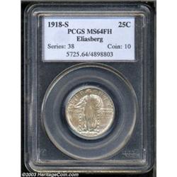 <table><tr><td><TABLE cellSpacing=0 cellPadding=0 width="100%" bgColor=#000000 border=0><TBODY> <TR><TD width="100%"><TABLE cellSpacing=1 cellPadding=3 width="100%" border=0><TBODY><TR><TD width="100%" bgColor=#79735c><FONT face=arial color=#ffffff size=3><B>Description</B> </FONT></TD></TR><TR><TD width="100%" bgColor=#ffffff><FONT face=arial size=2><B>1918-S 25C MS64 Full Head PCGS.</B></I> Ex: Eliasberg. Despite a mintage of more than 11 million pieces, it appears that very few 1918-S quarters were saved from circulation. Of that small number, perhaps fewer than one in five comes with a strike sharp enough to merit Full Head designation. This is a lightly and evenly toned specimen that shows some softness on the design in the central areas. <BR><I>Ex: Eliasberg Collection (B&M, 4/97), lot 1630.</B></I> </FONT></TD></TR></TBODY></TABLE></TD></TR></TBODY></TABLE><BR><A name=PricesRealized></A><TABLE cellSpacing=0 cellPadding=0 width="100%" bgColor=#000000 border=0><TBODY><TR><TD width="100%"><TABLE cellSpacing=1 cellPadding=3 width="100%" border=0><TBODY><TR><TD width="100%" bgColor=#79735c><A name=PR><FONT face=arial color=#ffffff size=3><B>Previous Prices from Heritage Auctions</B> </FONT></A></TD></TR><TR><TD bgColor=#f6f6ed><TABLE cellSpacing=0 cellPadding=0 width="100%" border=1><TBODY><TR><TD align=middle width="33%"><B>Date</B></TD><TD align=middle width="33%"><B>Service</B></TD><TD align=middle width="33%"><B>Price</B></TD></TR><TR bgColor=whitesmoke><TD width="33%"><B>09/10/2002</B></TD><TD width="33%">PCGS</TD><TD width="33%">$2,645.00</TD></TR><TR bgColor=whitesmoke><TD width="33%"><B>09/20/2003</B></TD><TD width="33%">PCGS</TD><TD width="33%">$3,105.00</TD></TR><TR bgColor=whitesmoke><TD width="33%"><B>03/01/2003</B></TD><TD width="33%">NGC</TD><TD width="33%">$2,472.50</TD></TR><TR bgColor=whitesmoke><TD width="33%"><B>09/28/2002</B></TD><TD width="33%">PCGS</TD><TD width="33%">$2,415.00</TD></TR><TR bgColor=whitesmoke><TD width="33%"><B>09/28/2002</B></TD><TD width="33%">PCGS</TD><TD width="33%">$3,680.00</TD></TR><TR bgColor=whitesmoke><TD width="33%"><B>07/30/2002</B></TD><TD width="33%">PCGS</TD><TD width="33%">$2,472.50</TD></TR><TR bgColor=whitesmoke><TD width="33%"><B>01/12/2002</B></TD><TD width="33%">PCGS</TD><TD width="33%">$2,990.00</TD></TR><TR bgColor=whitesmoke><TD width="33%"><B>08/08/2001</B></TD><TD width="33%">PCGS</TD><TD width="33%">$8,337.50</TD></TR><TR bgColor=whitesmoke><TD width="33%"><B>01/05/2001</B></TD><TD width="33%">NGC</TD><TD width="33%">$2,415.00</TD></TR><TR bgColor=whitesmoke><TD width="33%"><B>01/05/2001</B></TD><TD width="33%">PCGS</TD><TD width="33%">$4,140.00</TD></TR><TR bgColor=whitesmoke><TD width="33%"><B>08/07/2000</B></TD><TD width="33%">NGC</TD><TD width="33%">$3,910.00</TD></TR><TR bgColor=whitesmoke><TD width="33%"><B>01/07/2000</B></TD><TD width="33%">PCGS</TD><TD width="33%">$2,530.00</TD></TR><TR bgColor=whitesmoke><TD width="33%"><B>08/13/1999</B></TD><TD width="33%">NGC</TD><TD width="33%">$1,121.25</TD></TR><TR bgColor=whitesmoke><TD width="33%"><B>08/02/1997</B></TD><TD width="33%">PCGS</TD><TD width="33%">$1,955.00</TD></TR><TR bgColor=whitesmoke><TD width="33%"><B>01/11/1997</B></TD><TD width="33%">PCGS</TD><TD width="33%">$2,127.50</TD></TR><TR bgColor=whitesmoke><TD width="33%"><B>01/06/1996</B></TD><TD width="33%">PCGS</TD><TD width="33%">$5,280.00</TD></TR><TR bgColor=whitesmoke><TD width="33%"><B>09/10/1993</B></TD><TD width="33%">PCGS</TD><TD width="33%">$3,960.00</TD></TR><TR bgColor=whitesmoke><TD width="33%"><B>03/01/1997</B></TD><TD width="33%">ANACS</TD><TD width="33%">$7,700.00</TD></TR><TR bgColor=whitesmoke><TD width="33%"><B>01/01/1999</B></TD><TD width="33%">PCGS</TD><TD width="33%">$2,530.00</TD></TR></TBODY></TABLE></TD></TR><TR><TD bgColor=#ffffff><FONT face=arial size=1 ?>PLEASE NOTE: All prices realized reflect the final hammer price PLUS the buyer's premium in auctions that charge a buyer's premium. Each item has a notation at the top of the listing indicating whether that lot included a buyer's premium. Example: A item that sells with a final hammer price of $100 and a 20% buyer's premium will display with a price realized of $120. All information listed is intended to be as accurate as possible, but errors are possible. Please use this guide carefully and inform us of any inaccuracies. </FONT></TD></TR></TBODY></TABLE></TD></TR></TBODY></TABLE><BR><TABLE cellSpacing=0 cellPadding=0 width="100%" bgColor=#000000 border=0><TBODY><TR><TD width="100%"><TABLE cellSpacing=1 cellPadding=3 width="100%" border=0><TBODY><TR><TD width="100%" bgColor=#79735c colSpan=6><FONT face=arial color=#ffffff size=3><B>Price Guide*</B> </FONT></TD></TR><TR bgColor=#f6f6ed><TD align=middle><B>Grade</B> </TD><TD align=middle><B>Coin World<BR>(Trends)</B> </TD><TD align=middle><B>Numismedia<BR>Retail</B> </TD><TD align=middle><B>Numismedia<BR>Wholesale</B> </TD><TD align=middle><B>Coin<BR>Universe</B> </TD><TD align=middle><B>Heritage<BR>Value Index</B> </TD></TR><TR bgColor=#ffffff><TD align=middle>63</TD><TD align=right>$1,550.00</TD><TD align=right>---</TD><TD align=right>$1,075.00</TD><TD align=right>$1,300.00</TD><TD align=right>$848.25</TD></TR><TR style="FONT-WEIGHT: bold" bgColor=#cccfdd><TD align=middle>64</TD><TD align=right>$8,000.00</TD><TD align=right>---</TD><TD align=right>$2,550.00</TD><TD align=right>$5,000.00</TD><TD align=right>$2,971.88</TD></TR><TR bgColor=#ffffff><TD align=middle>65</TD><TD align=right>$17,500.00</TD><TD align=right>---</TD><TD align=right>$8,850.00</TD><TD align=right>$11,500.00</TD><TD align=right>$8,716.67</TD></TR><TR bgColor=#ffffff><TD colSpan=6><FONT size=1>*All information listed is intended to be as accurate as possible, but errors are possible. No item may be returned or refused based on this information which is provided as a service to our customers. You should contact each pricing source directly to determine the accuracy of this information. </FONT></TD></TR></TBODY><