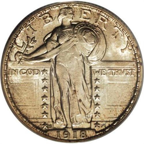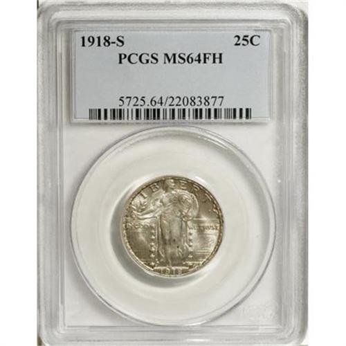 <B>1918-S 25C MS64 Full Head PCGS.</B></I> A scarce San Francisco date in the series exhibiting satiny luster and some very light, natural throughout. The head detail is full and sharp, but some of the rivets are missing from the shield. A few minor contact marks limit the grade. Population: 82 in 64, 34 finer (8/07).<BR><BR><B>Coin Engraver:</B> Hermon A. MacNeil<BR><BR><b>Shipping:</b> Coins & Currency (<a target="_blank" href="http://www.heritageauctions.com/common/shipping.php">view shipping information</a>)