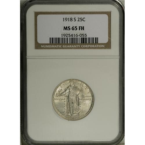 1918-S 25C MS65 Full Head NGC. Soft, satiny luster hig