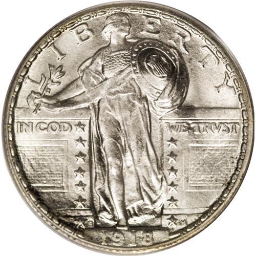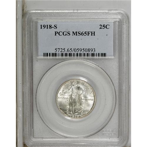 <B>1918-S 25C MS65 Full Head PCGS.</B></I> A fully brilliant and stunning Gem, this piece has highly lustrous and frosty silver surfaces with sharp design features on both sides as suggested by the PCGS designation. The only evidence of design weakness is along the inner edge of the shield at 7 o'clock, and this part of the design is notorious for its indistinct appearance. Although the head details are the focal point of collectors who desire sharply struck coins of this design, a "Full Shield" designation might be even more telling. Population: 29 in 65, 6 finer (3/07).<BR><BR><b>Shipping:</b> Coins & Currency (<a target="_blank" href="http://www.heritageauctions.com/common/shipping.php">view shipping information</a>)