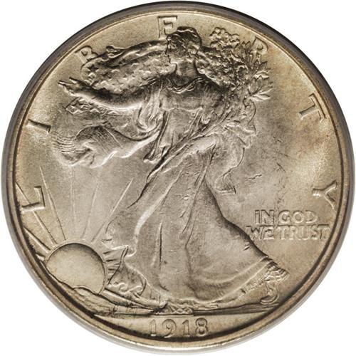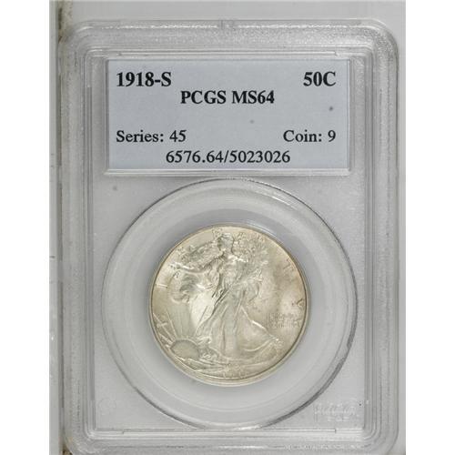 <B>1918-S 50C MS64 PCGS.</B></I> Bruce Fox (1993) writes that: "Liberty's hand, leg and the branches she holds tend to blend together as one entity." Fox's remarks do not apply to this near-Gem! The left hand and branches are well delineated, and separated from the leg. A thin veneer of tan-champagne color rests upon lustrous surfaces. A few minor obverse marks define the grade.<BR><BR><b>Shipping:</b> Coin/Currency (<a target="_blank" href="http://www.heritageauctions.com/common/shipping.php">view shipping information</a>)