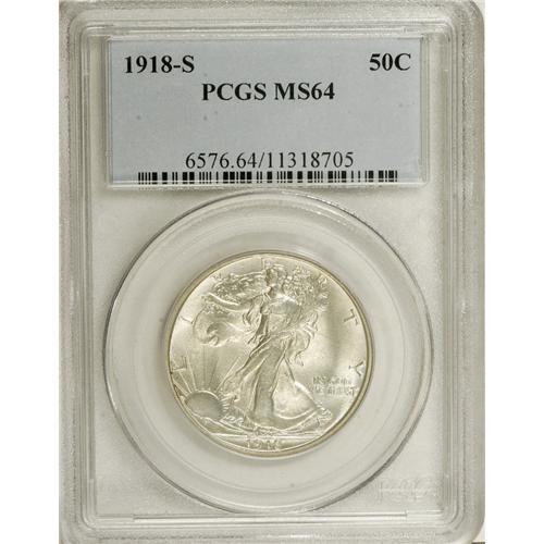 1918-S 50C MS64 PCGS. The strike is fairly sharp, with