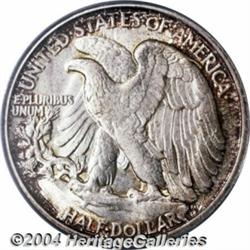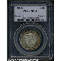 <B>1918-S<50C> MS64 PCGS.</B></I> Rich tobacco-brown and orange-gold patina dominates the borders of this early branch mint Walker, while the centers are bathed in dove-gray colors. Liberty's head and branch hand are nicely if not fully struck, and satiny luster rolls unencumbered across the impressively undisturbed surfaces. A lovely near-Gem to be treasured by the specialist who covets original patina. <BR><BR><B>Important notice:</B> Heritage usually auctions material at the rate of 200-250 lots per hour. On some occasions eBay Live bid software or the Internet may not be able to keep up with the pace of the auction. We recommend placing a realistic absentee bid now as insurance to avoid disappointment. Occasionally the auctioneer may eliminate or reject an eBay Live bid, and the auctioneer may also reopen a lot after the close of the eBay live bidding (usually because we missed an audience bid), and may reject your bid even if it shows you as the winning bidder. By bidding via eBay Live, you agree that Heritage may award the lot to another bidder at its sole discretion under the circumstances described above or any other reasonable circumstances. Since eBay bids are not shown to us until we open the lot on the floor, we treat those bids just like floor bids. In most cases the floor responds before the eBay bid is presented to us, due to Internet lag time, so for consistency we have made it a policy that floor bids are always considered first over tie eBay live bids. Also please note that all Heritage lots purchased through eBay Live carry a 20% Buyer's Premium. Please make sure you read the Terms and Conditions before you bid. </span></font></tr></table></td></tr></table>