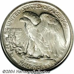 <table><tr><td><table><tr><td>1918-S 50C MS65 NGC. A delightfully preserved '18-S Walker that exhibits frosty brilliance through the centers and is framed in attractive golden toning. The strike is very well executed on the obverse and is only a trifle soft on the eagle's breast feathers. A small reeding mark at the center of the obverse is the only blemish of even the slightest concern. Population: 30 in 65, 3 finer (3/04). <BR><BR><B>Important notice:</B> Heritage usually auctions material at the rate of 200-250 lots per hour. On some occasions eBay Live bid software or the Internet may not be able to keep up with the pace of the auction. We recommend placing a realistic absentee bid now as insurance to avoid disappointment. Occasionally the auctioneer may eliminate or reject an eBay Live bid, and the auctioneer may also reopen a lot after the close of the eBay live bidding (usually because we missed an audience bid), and may reject your bid even if it shows you as the winning bidder. By bidding via eBay Live, you agree that Heritage may award the lot to another bidder at its sole discretion under the circumstances described above or any other reasonable circumstances. Since eBay bids are not shown to us until we open the lot on the floor, we treat those bids just like floor bids. In most cases the floor responds before the eBay bid is presented to us, due to Internet lag time, so for consistency we have made it a policy that floor bids are always considered first over tie eBay live bids. Also please note that all Heritage lots purchased through eBay Live carry a 20% Buyer's Premium. Please make sure you read the Terms and Conditions before you bid. <BR><BR><B>IMPORTANT ANNOUNCEMENT ABOUT RESERVES:</B> Heritage now divulges all reserves on its web site 7 days before every auction. If you want to know whether the reserve on this lot has been met, and if not, what the reserve amount is, please visit this lot page on the HeritageCoin.com web site, or email: bid@HeritageGalleries.com </span></font></td></tr></table></td></tr></table>