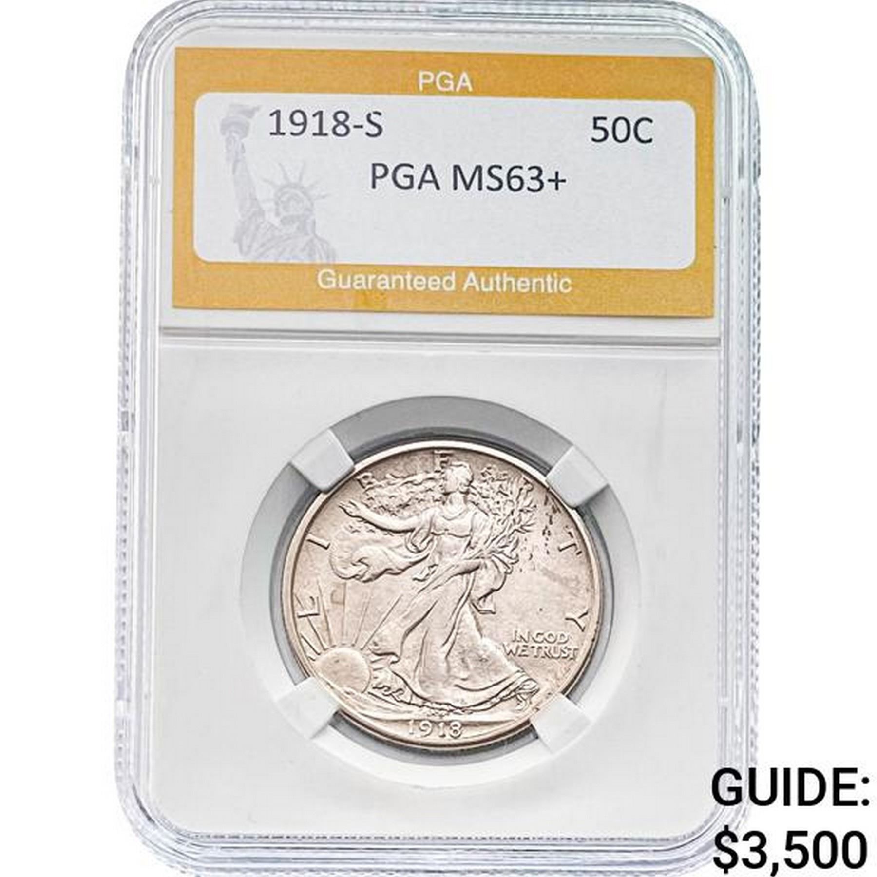 1918-S 50C PGA MS63+
