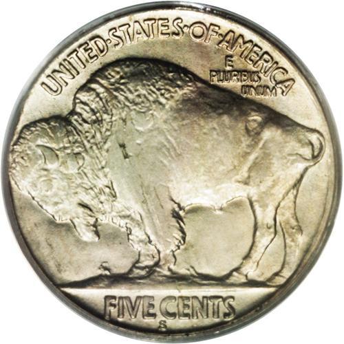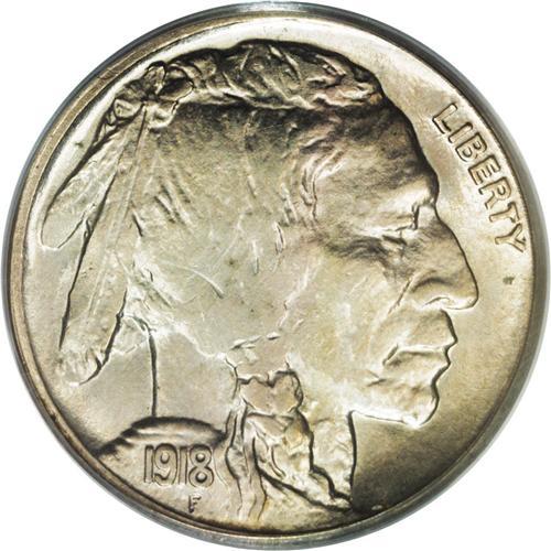 <B>1918-S<5C> MS63 PCGS.</B></I> Branch mint Type Two nickels from the teens and twenties are notoriously scarce in Mint State. The 1918-S is no exception. In fact, it is more difficult to find than many lower mintage dates, particularly the comparatively plentiful 1913-S Type Two. This light tan and slate-gray example is void of marks, and would grade higher save for a soft central impression, although the borders are sharply defined. A couple of thin lamination streaks, as made, cross the bison. Housed in a green label holder.<BR><I>From The Tide Collection.</B></I>