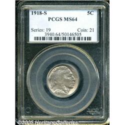<B>1918-S 5C MS64 PCGS.</B></I> One of the genuinely scarce S-mint Buffalo Nickel issues in Uncirculated grades, comparing favorably in rarity to all but the 1926-S where it is only marginally edged out. This is a well, but not fully struck piece that has lovely mint frost over each side and just the lightest accent of rose and lilac patina.