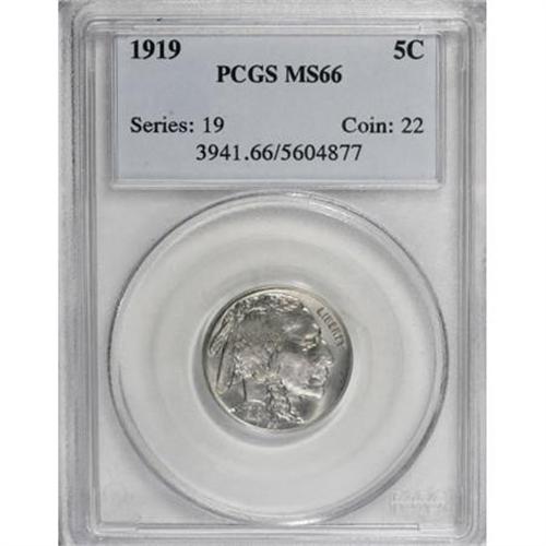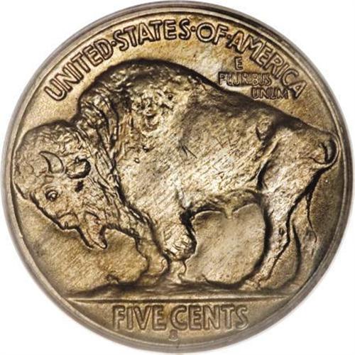 <B>1918-S 5C MS64 PCGS.</B></I> Both sides of this near-Gem display rich gold peripheral toning that fades to blushes of gray-blue over the centers. The underlying surfaces offer lovely quicksilver luster, though the strike shows the usual softness at the centers. Despite its shortcomings, knowledgeable collectors will instantly appreciate the rarity and desirability of this early S-mint Buffalo. PCGS has graded 31 finer examples (12/07).<BR><BR><B>Coin Engraver:</B> James E. Fraser<BR><BR><b>Shipping:</b> Coins & Currency (<a target="_blank" href="http://www.heritageauctions.com/common/shipping.php">view shipping information</a>)