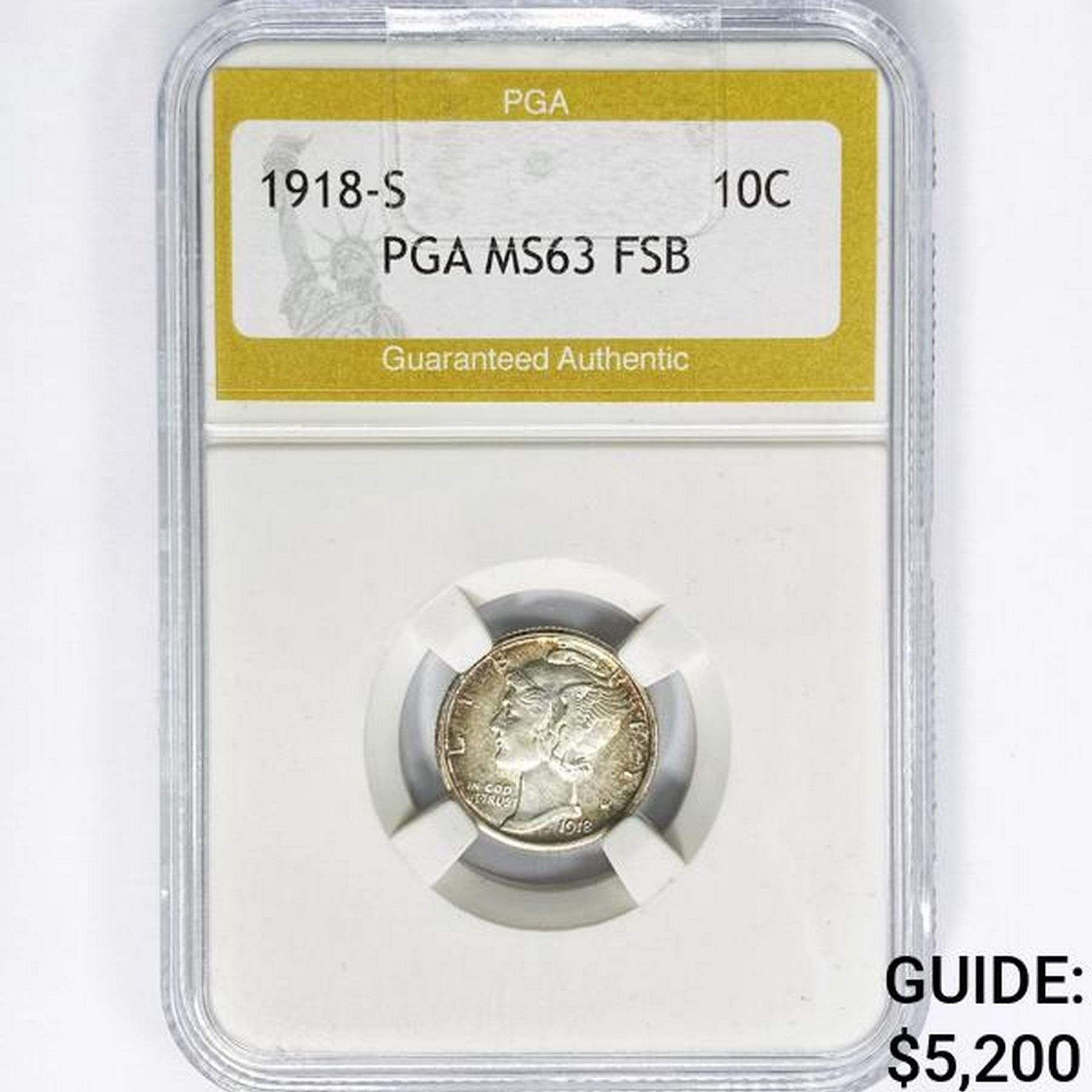 1918-S Mercury Silver Dime PGA MS63 FSB