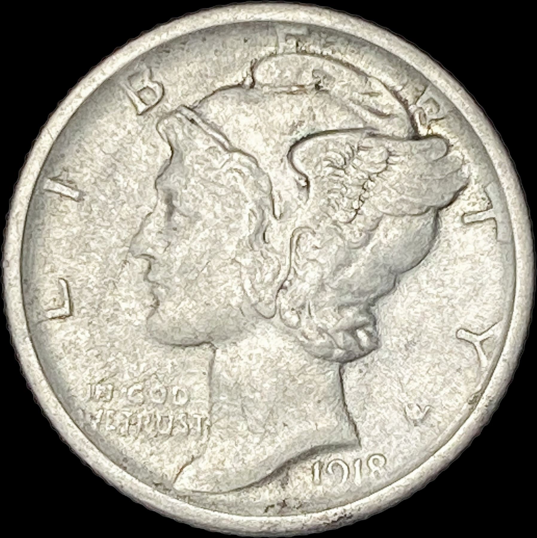 1918-S Silver Mercury Dime CLOSELY UNCIRCULATED