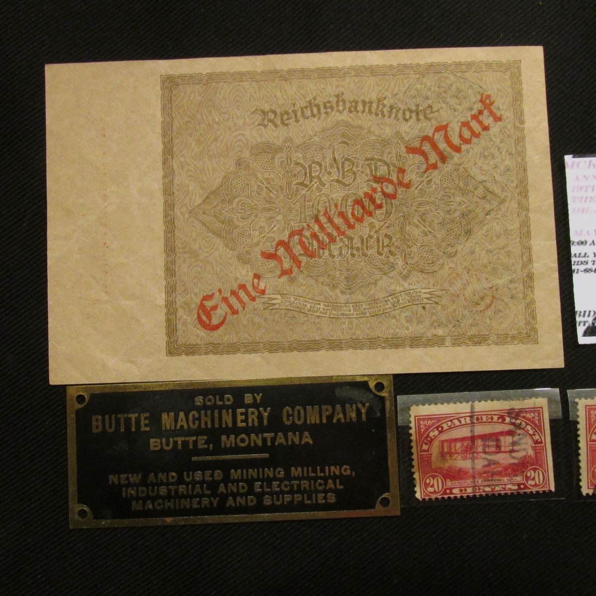 Absentee bidders will receive an invoice detailing their successful bid and shipping charges. Payment must be made within five days of receipt of notification and lots will be mailed after payment in full has been made.