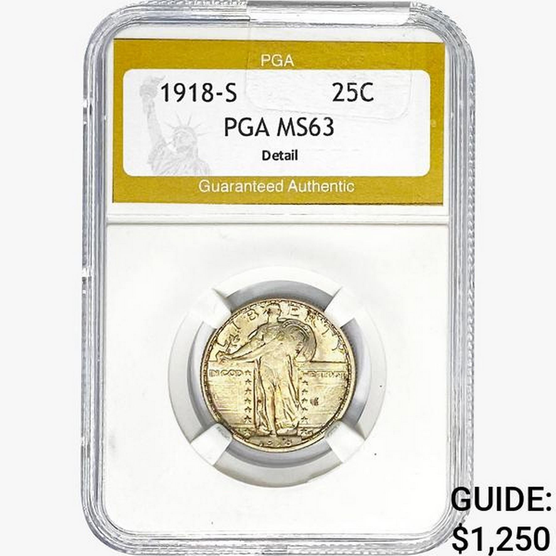 1918-S Standing Liberty Quarter PGA MS63 DETAIL