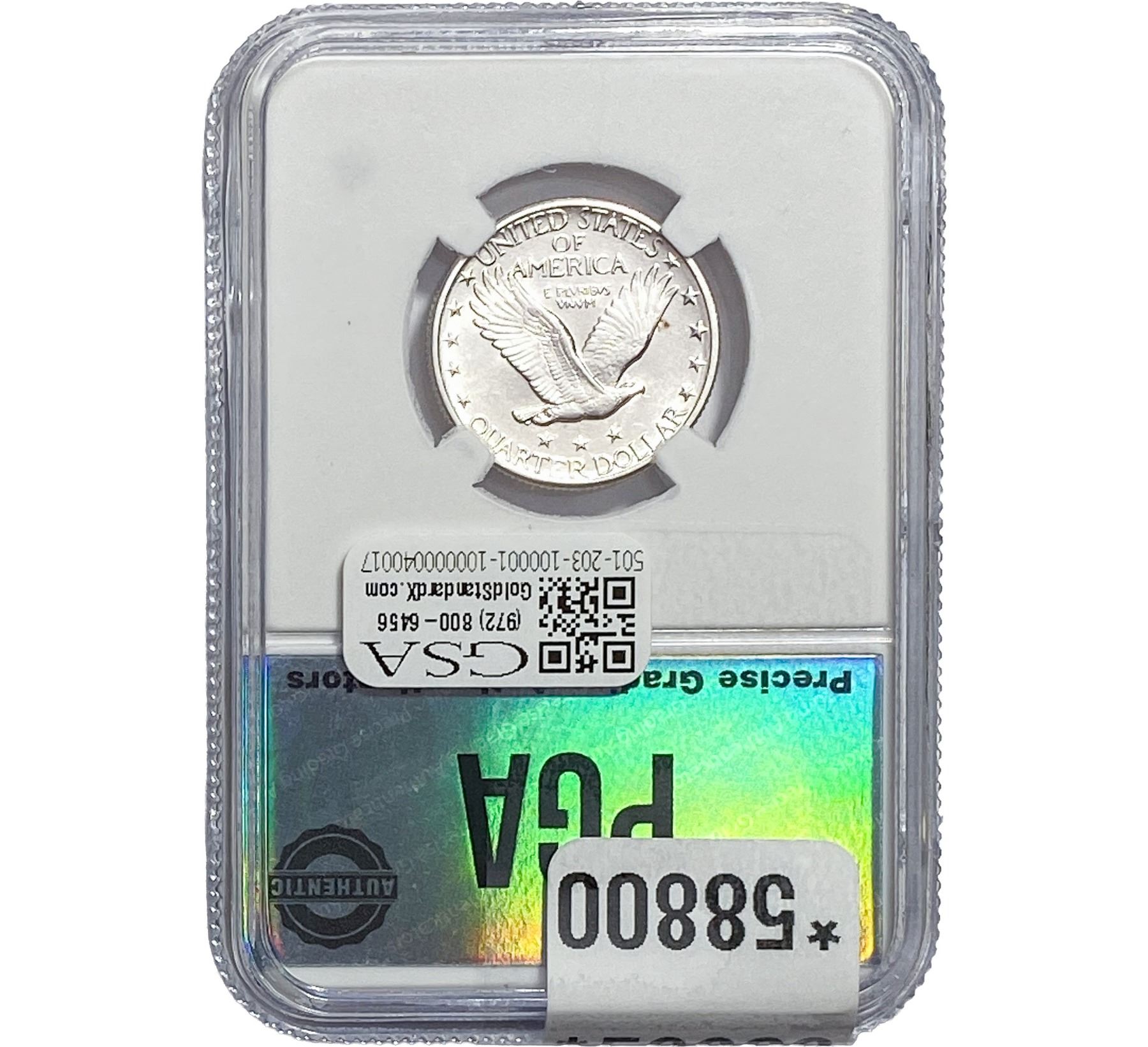 COINS AND CURRENCY LISTED IN GSA’S CATALOG AS GRADED AND ENCAPSULATED BY PCGS, NGC, ANACS, ICG, PCGS CURRENCY, PMG, PCGS BANKNOTE GRADING, CMC OR ANY OTHER THIRD-PARTY GRADING SERVICE ARE LIKEWISE SOLD “AS-IS” EXCEPT AS EXPRESSLY SET FORTH HEREIN. ALL THIRD-PARTY GRADING SERVICE GUARANTEES, INCLUDING AUTHENTICITY, ARE THE SOLE RESPONSIBILITY OF THE THIRD-PARTY GRADING SERVICE AND NOT WARRANTIES OR GUARANTEES OF GSA. BIDDERS SHOULD CONTACT THESE THIRD-PARTY GRADING SERVICES DIRECTLY WITH RESPECT TO ANY CLAIMS OR QUESTIONS THEY MAY HAVE CONCERNING THEIR GUARANTEES AND WARRANTIES. BIDDERS ACKNOWLEDGE AND AGREE THAT AUCTIONEER IS NOT BOUND BY OR LIABLE FOR ANY OPINION OR CERTIFICATION BY ANY THIRD-PARTY GRADING SERVICE. REMOVAL OF A PRODUCT FROM ITS PROTECTIVE CASING OR HOLDER OR ALTERATION OF ANY COIN HOLDER WAIVES ALL RIGHTS CONCERNING THE PRODUCT CONTAINED THEREIN.