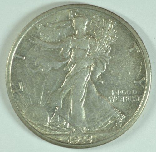 1918-S WALKING LIBERTY HALF DOLLAR, AU-53 NICE ORIGINAL