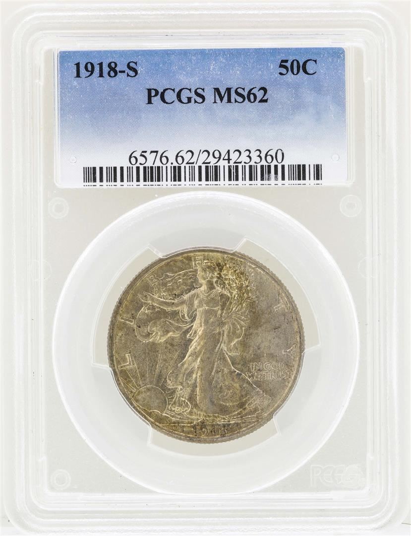 One 1918-S Walking Liberty Half Dollar Coin PCGS MS62. PCGS Certified.