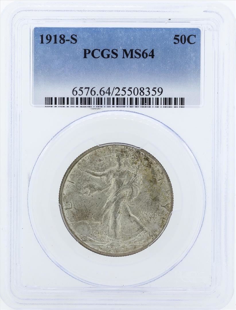 One 1918-S Walking Liberty Half Dollar Coin PCGS MS64. PCGS Graded.