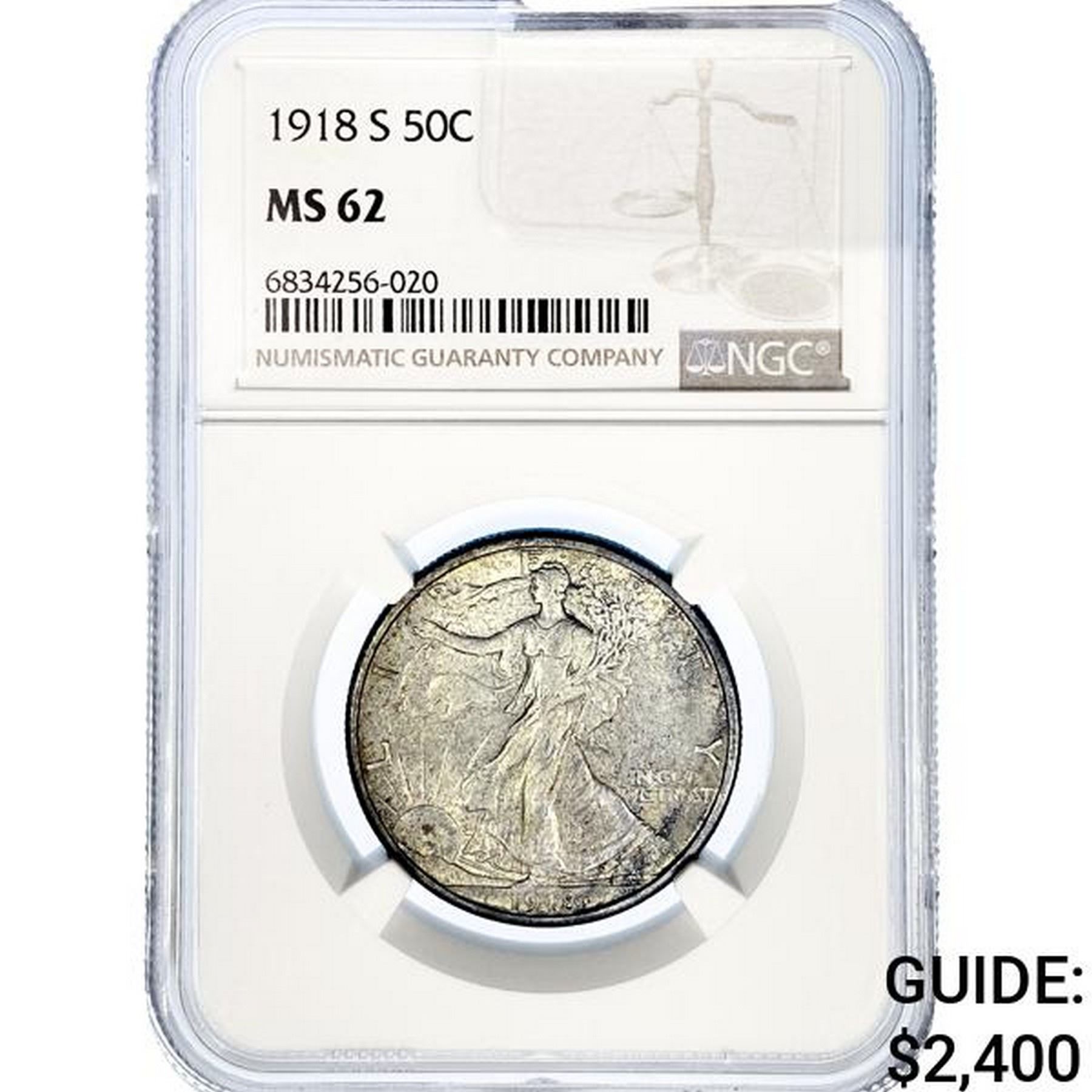 1918-S Walking Liberty Half Dollar NGC MS62