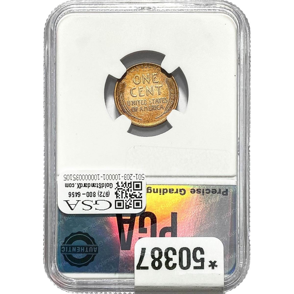 e. Coins sold referencing a third-party grading service are sold “AS IS” without any express or implied warranty, except for a guarantee by GSA that they are genuine. Removal or alteration of the holder, voids all of Bidder’s claims concerning that Product. Certain warranties may be available from the grading services and Bidders are referred to them for further details: Numismatic Guaranty Corporation (NGC), PO Box 4776, Sarasota, FL 34230, www.ngccoin.com/services/writtenguarantee.asp; Professional Coin Grading Services (PCGS), PO Box 9458, Newport Beach, CA 92658, www.pcgs.com/guarantee.html; ANACS, 6555 S. Kenton St., Ste. 303, Englewood, CO 80111; and Independent Coin Grading Co. (ICG), 7901 East Bellview, Ave., Suite 50, Englewood, CO 80111.