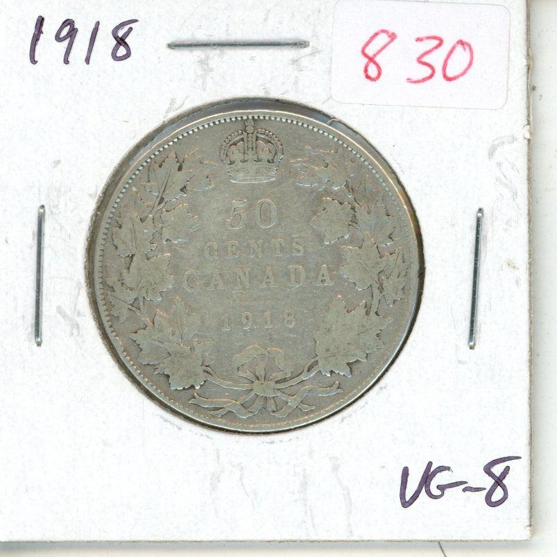 1918 Silver 50 Cents. Issued during the last year of World War I. VG-8.