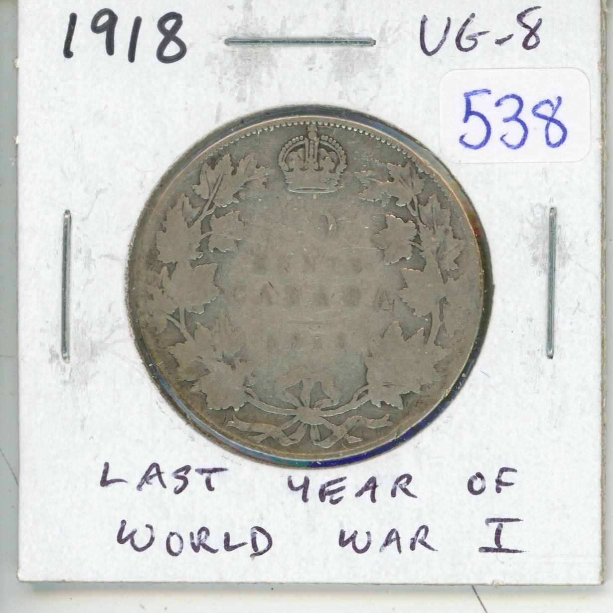 1918 Silver 50 Cents. Issued during the last year of World War I. VG-8.