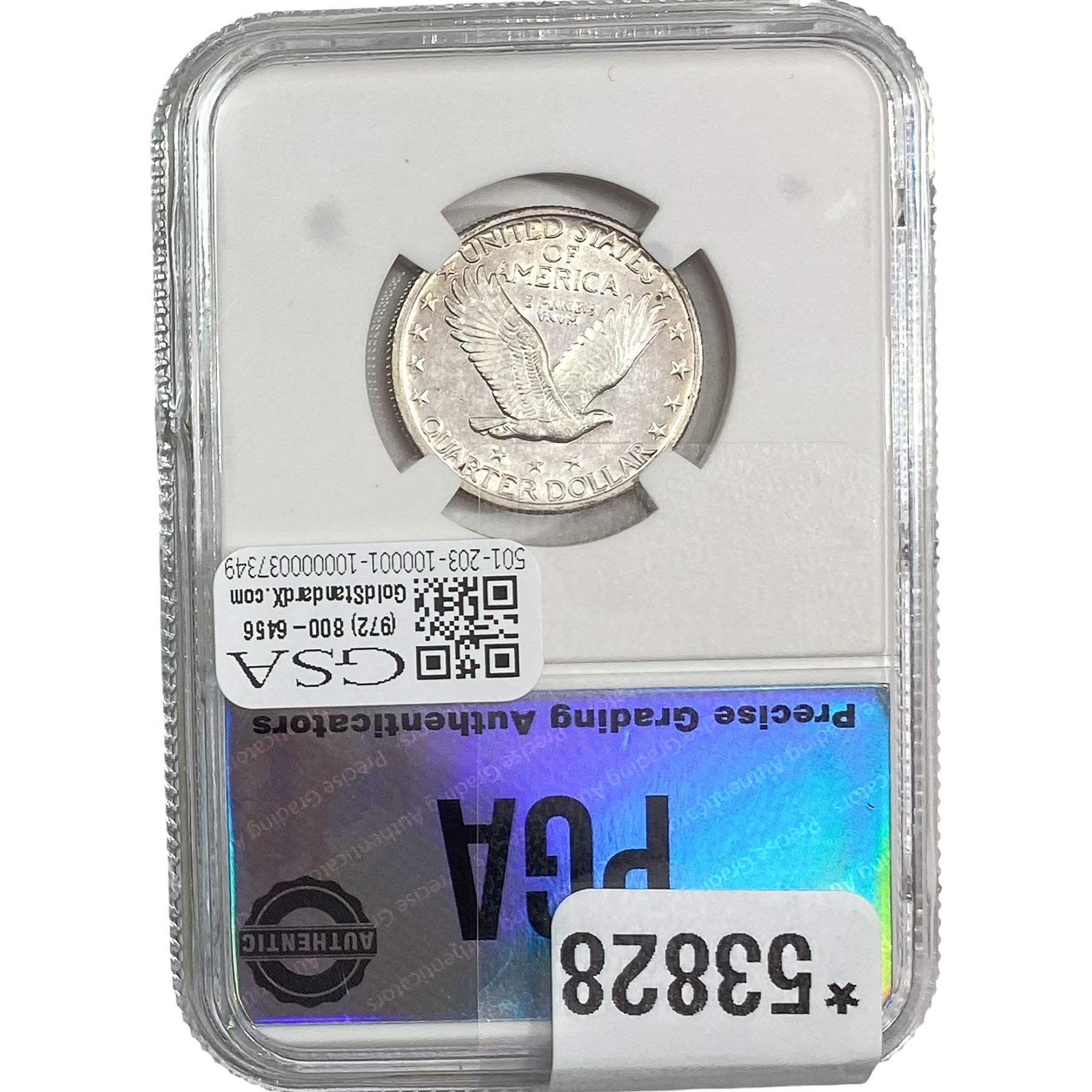 e. Coins sold referencing a third-party grading service are sold “AS IS” without any express or implied warranty, except for a guarantee by GSA that they are genuine. Removal or alteration of the holder, voids all of Bidder’s claims concerning that Product. Certain warranties may be available from the grading services and Bidders are referred to them for further details: Numismatic Guaranty Corporation (NGC), PO Box 4776, Sarasota, FL 34230, www.ngccoin.com/services/writtenguarantee.asp; Professional Coin Grading Services (PCGS), PO Box 9458, Newport Beach, CA 92658, www.pcgs.com/guarantee.html; ANACS, 6555 S. Kenton St., Ste. 303, Englewood, CO 80111; and Independent Coin Grading Co. (ICG), 7901 East Bellview, Ave., Suite 50, Englewood, CO 80111.