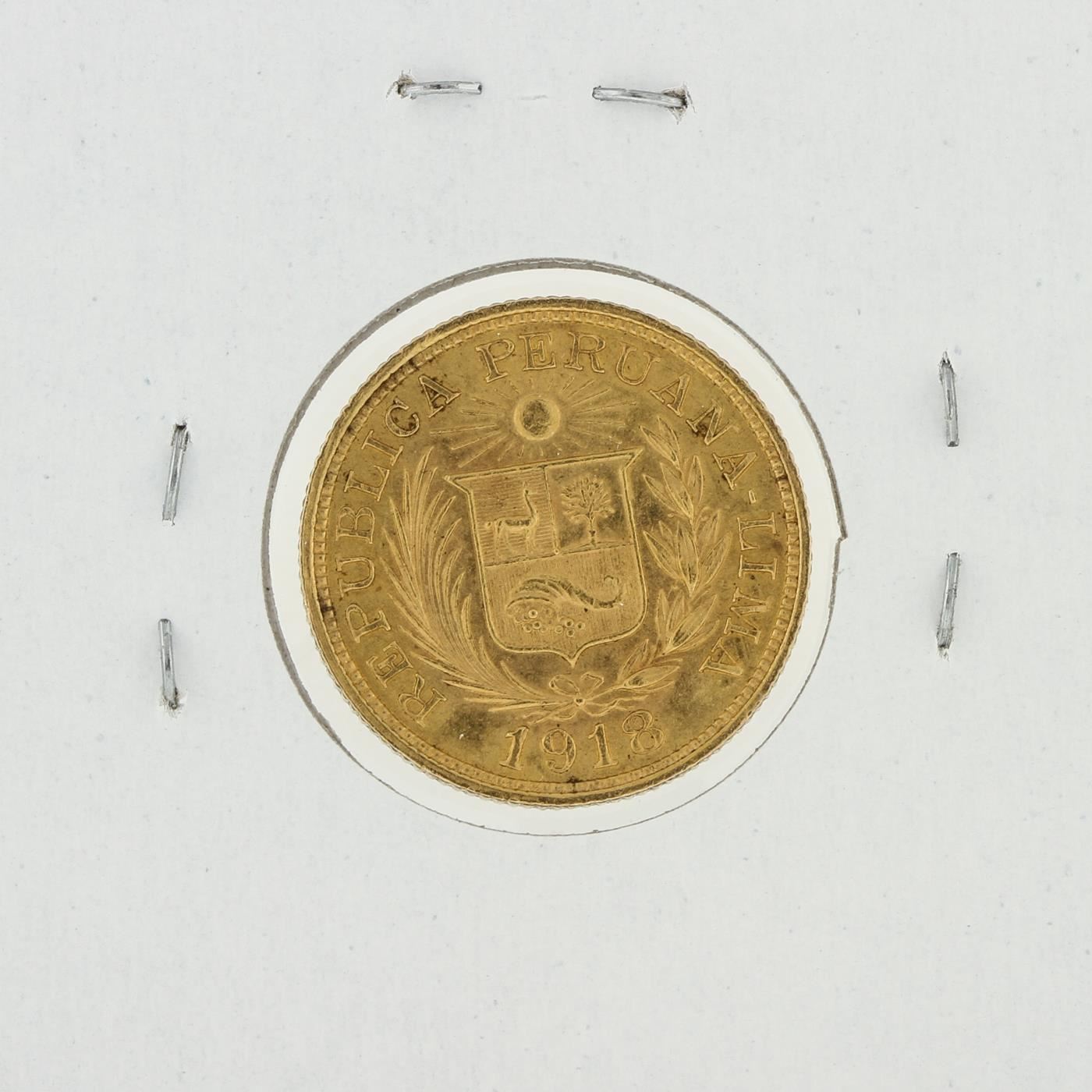 One 1918 Una Libra Gold Coin. Total weight if coin is 7.9 grams.