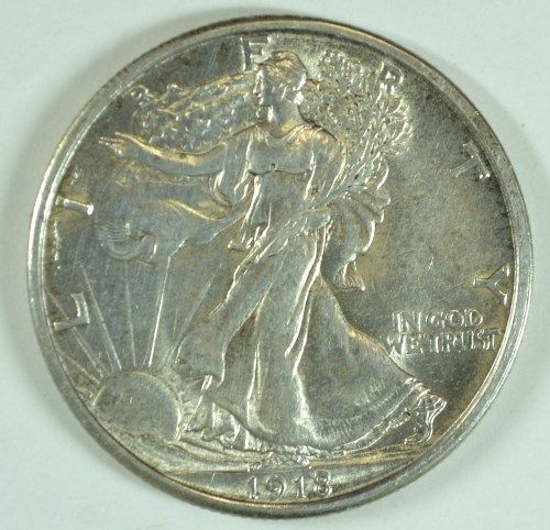 1918 WALKING LIBERTY HALF DOLLAR, MS-61 NICE WHITE COIN
