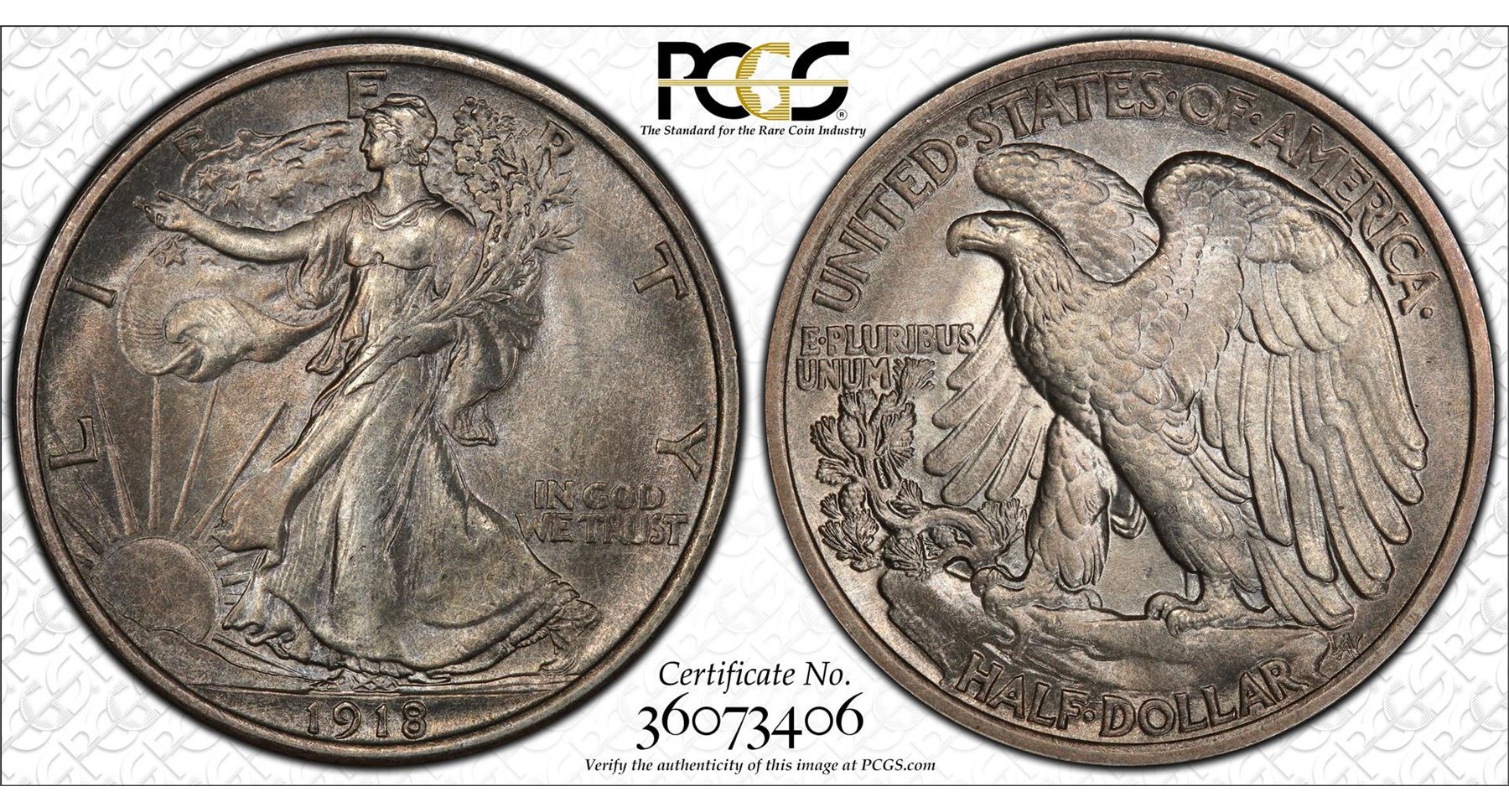 One 1918 Walking Liberty Half Dollar Coin PCGS MS63. PCGS Graded.